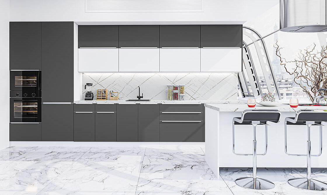 Высококачественная пленка, ПЭТ, пластик/акрилит, эмаль в матовом лаке в модульных кухнях